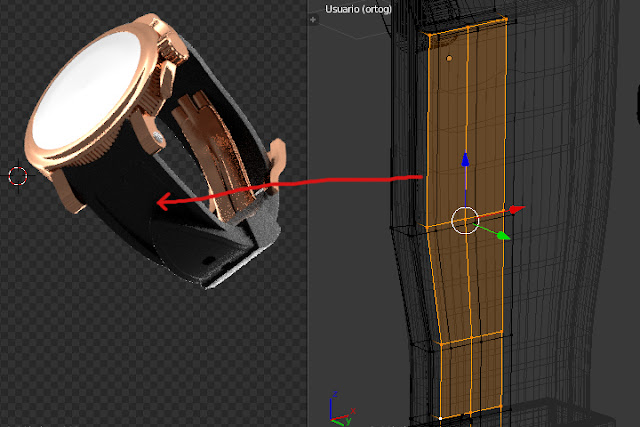 Lo que queremos hacer aquí es desplazar una textura en ésta zona del reloj. Para ellos en modo edición seleccionamos los vértices necesarios